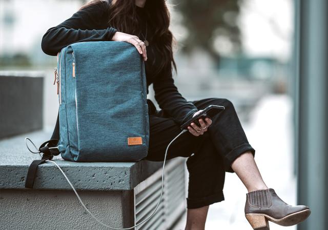 ●リュックを担いだままでもUSB充電が可能な最新モデル。