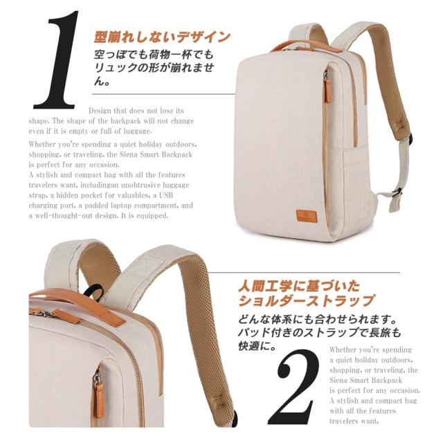 ビジネスリュック メンズ レディース 大容量 薄型 ブランド ノルディス シエナ クラシック【正規輸入販売代理店】 Nordace Siena ND1001 19L 軽量 リュック USB充電ポート PC収納 15.6インチ 通勤 通学 旅行