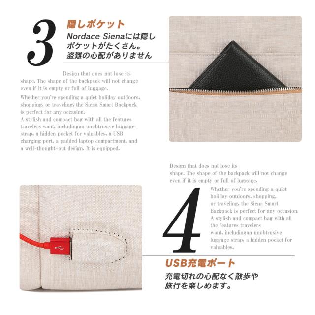 Nordace Sienaクラシック 軽量デイリーリュック ND1001 大容量 軽量 USB充電 PC トラベル 出張 旅行 通学 通勤 父の日 プレゼント