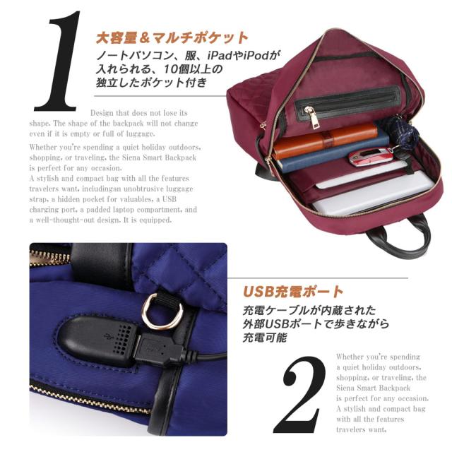 ●ノートパソコン、服、iPadやiPodが入れられる、10個以上の独立したポケット付き