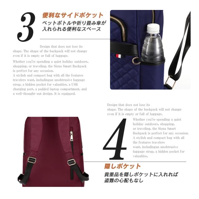 ビジネスリュック レディース リュック バック デイリーリュック ノルディス Nordace Ellie ML251951 15L 【正規輸入販売代理店】 ブランド 軽量 PC収納 タブレット収納 USB充電ポート 3color 耐水性素材 ボトルポケット トラベル 通勤 通学 デイリー