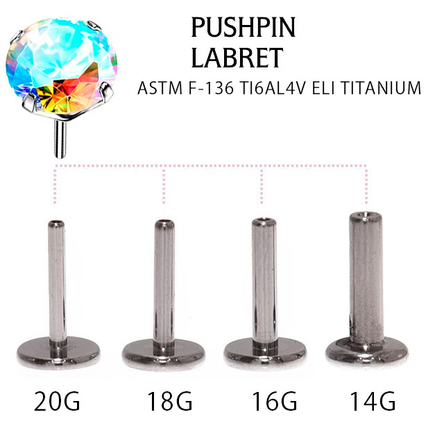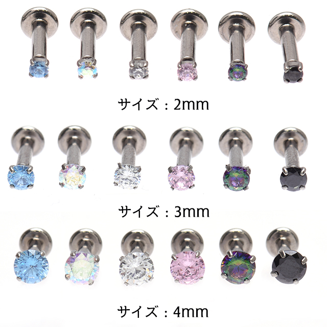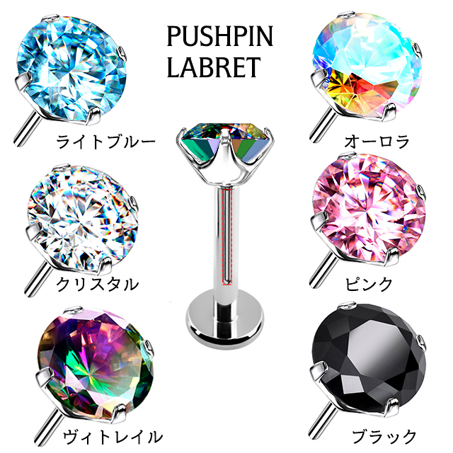 プッシュピアス 20G 18G 16G 14G 全6色 立爪 ジュエル 金属アレルギー対応 チタンピアス ラブレットスタッズ ボディピアス