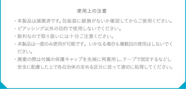 ・本製品は滅菌済みです。包装袋に破損がないか確認してからご使用ください。