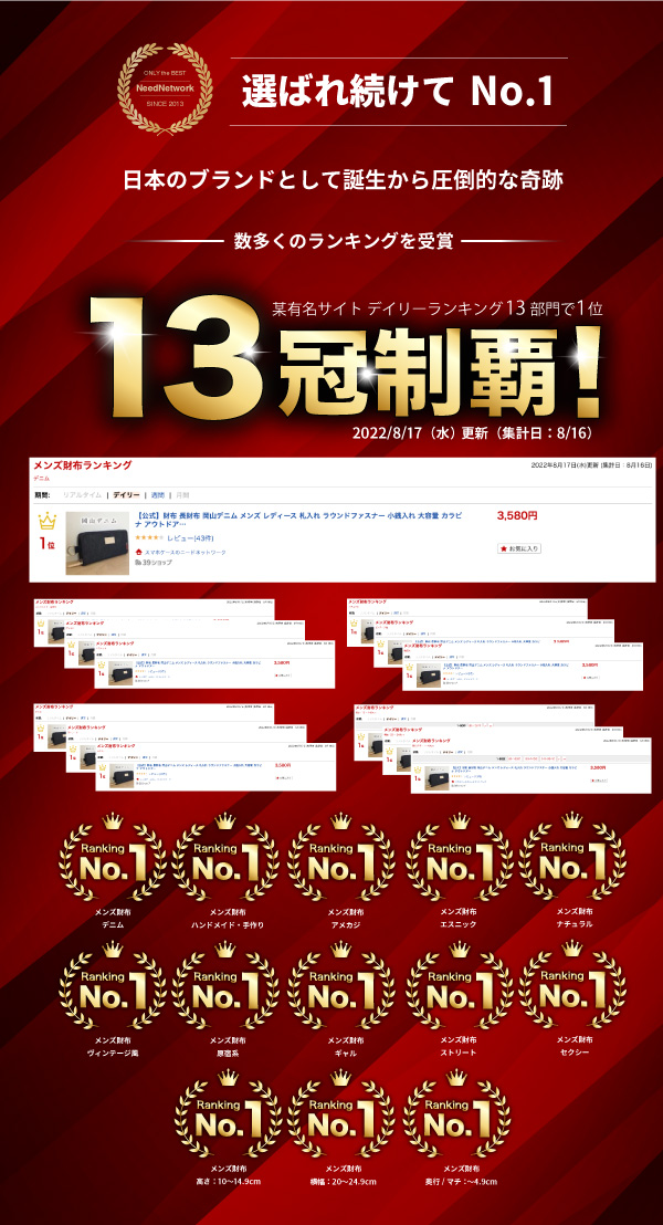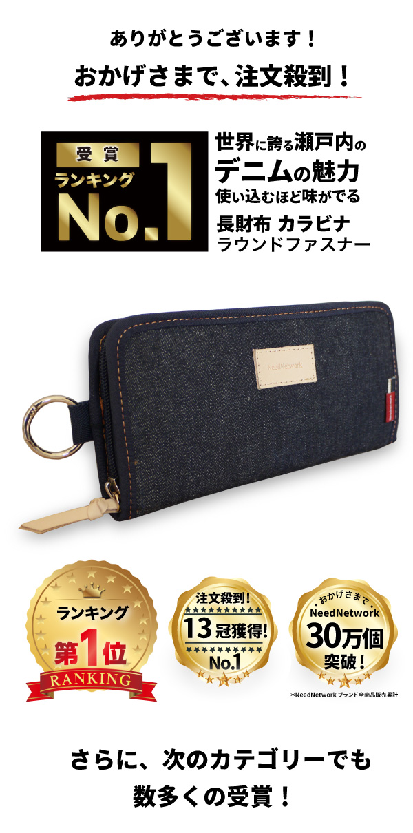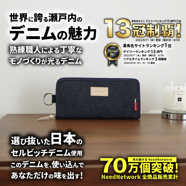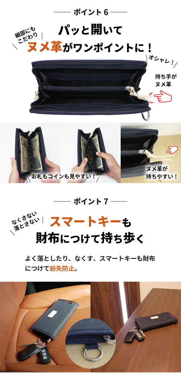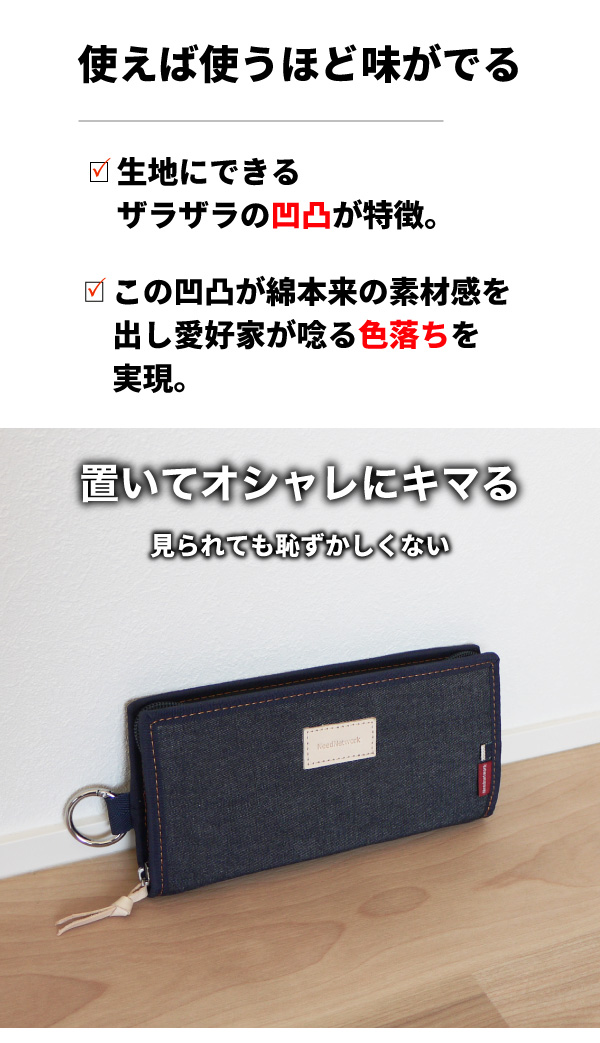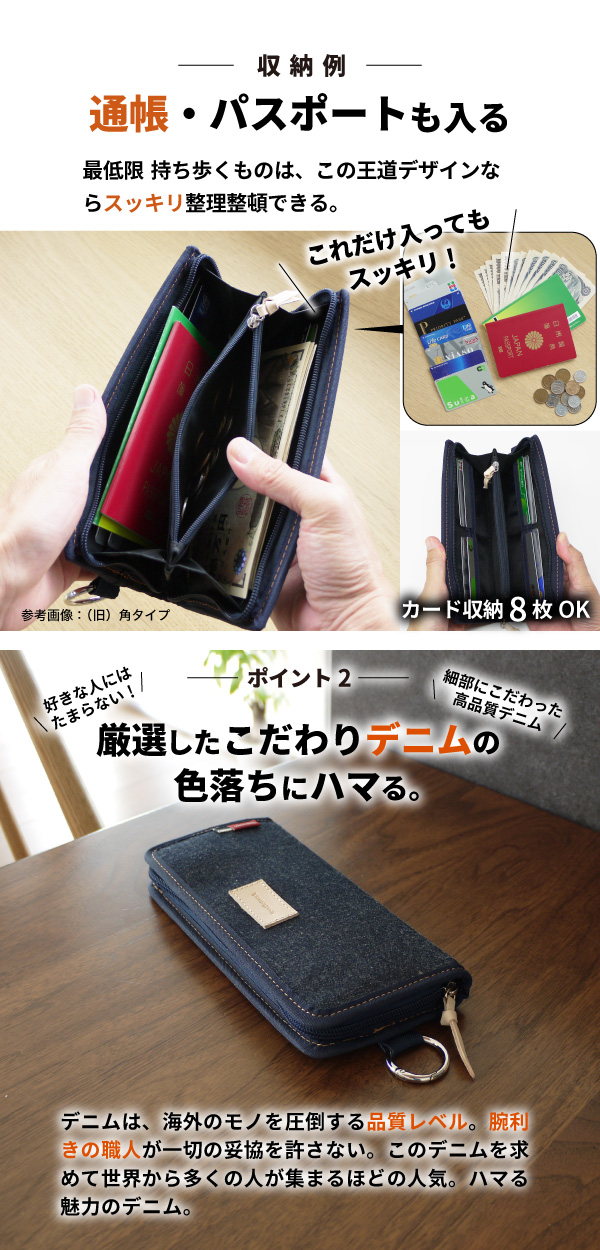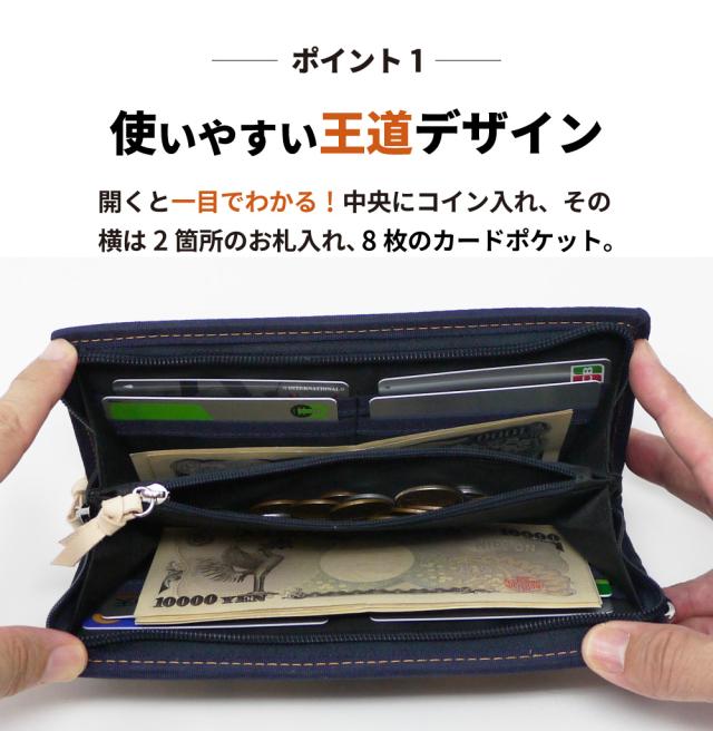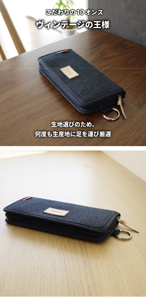 財布 日本が誇るデニム 長財布 メンズ レディース 札入れ ラウンドファスナー 小銭入れ 大容量 カラビナ アウトドア ロングウォレット