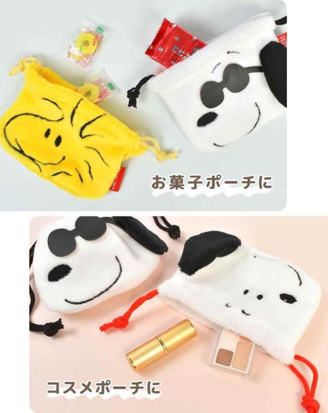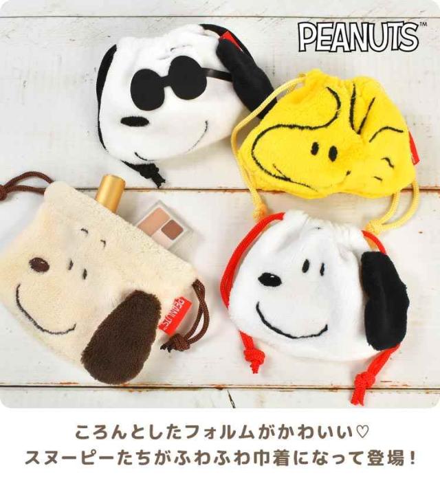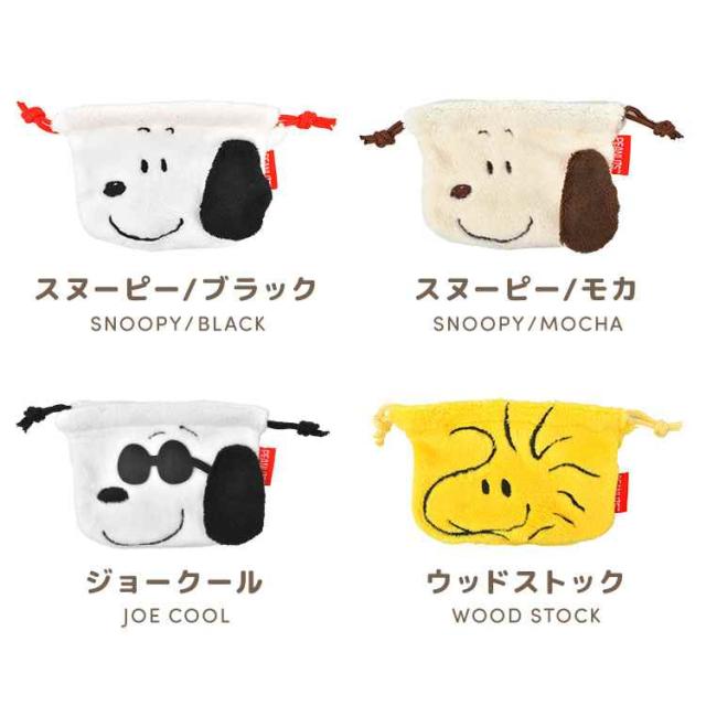 巾着 ポーチ SNOOPY スヌーピー 小物入れ ミニポーチ ミニ巾着 ぬいぐるみ ふわふわ もこもこ キャラクター フェイス 顔 巾着袋 小さい コスメ メイク お菓子 かわいい きんちゃく PEANUTS ジョークール ウッドストック 大人 子供 通勤 通学 グッズ 雑貨 ギフト プレゼント