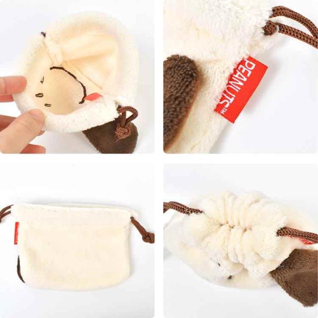 ころんとしたフォルムがかわいい♪スヌーピーたちがふわふわ巾着になって登場!手のひらサイズでコスメやお菓子などちょっとした小物入れにぴったり!耳や尻尾が立体なのもポイントです♪