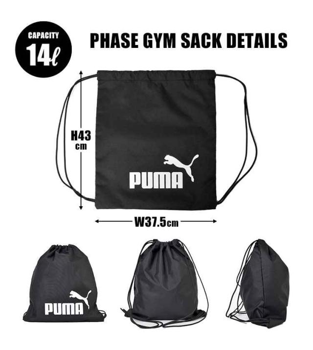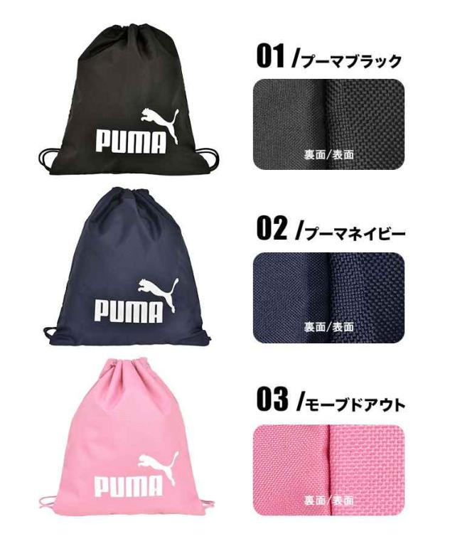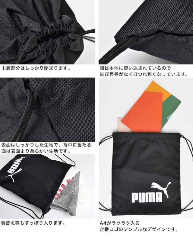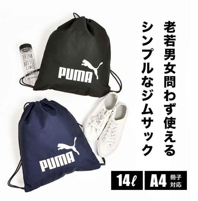 ナップサック スポーツ 女の子 PUMA プーマ レディース メンズ キッズ 子供 男の子 小学生 中学生 高校生 体操着入れ リュック ジムバッグ サブバッグ 14L ブラック ネイビー ピンク ジュニア サッカー フットサル 学校 クラブ 部活 通学 通勤 体操 ジム スポーツ ブランド