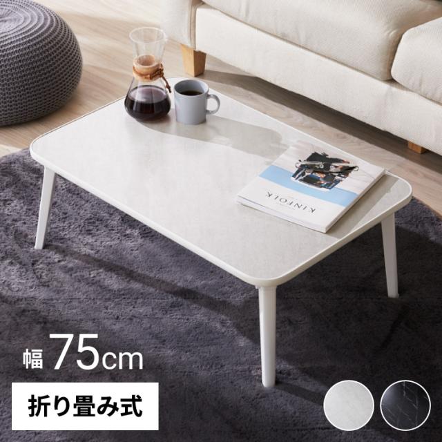 折りたたみテーブル 大理石柄 75×50 長方形 ローテーブル コーヒーテーブル センターテーブル リビングテーブル おしゃれ【送料無料】