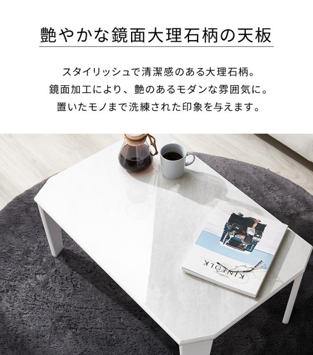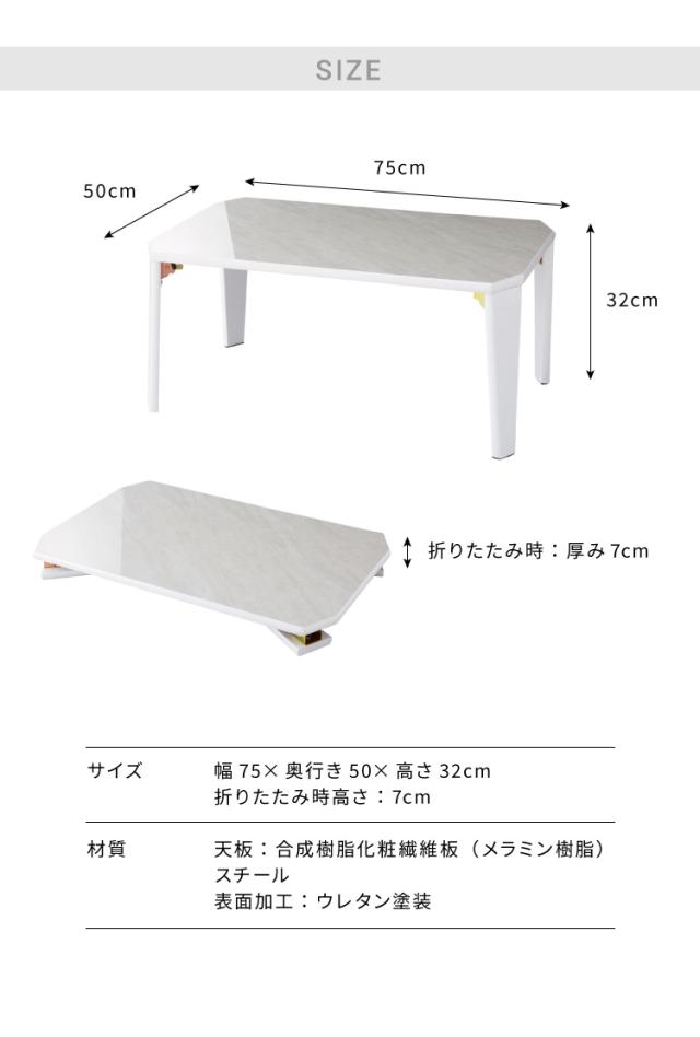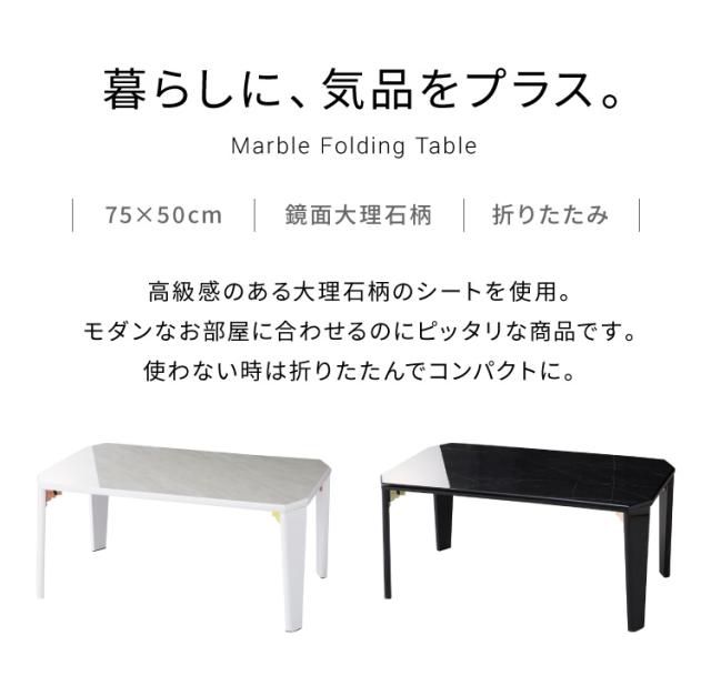 鏡面仕上げ 折りたたみテーブル 大理石柄 75×50 長方形 ローテーブル コーヒーテーブル センターテーブル リビングテーブル おしゃれ【送料無料】