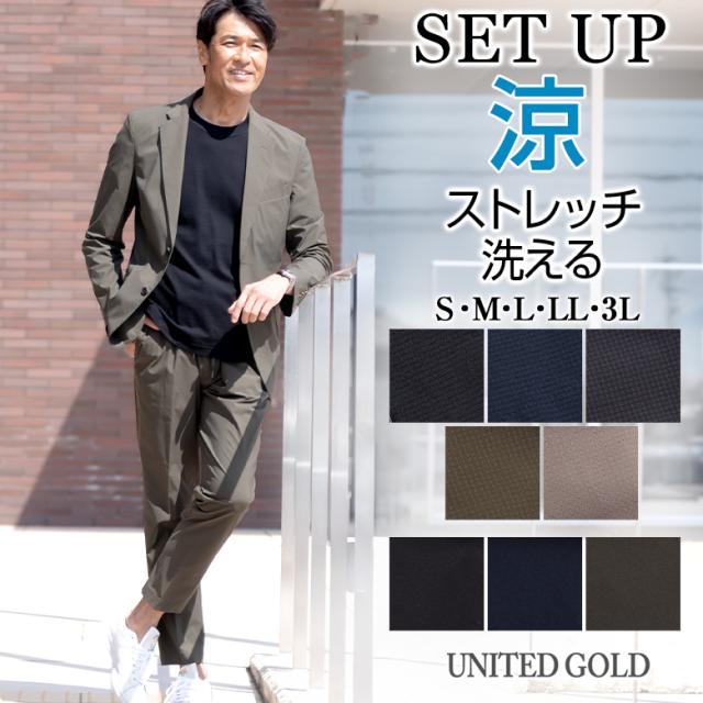 セットアップ メンズ カジュアルスーツ 春夏 涼感 ストレッチ 通気性 撥水加工 メッシュ素材 プリーツ加工 上下セット ジャケット パンツ ビジネス カジュアル 洗える 125301 125302 送料無料 suit161 【キーワード】休日 スリム テーパードパンツ シャーリング スウェット ストレッチ 伸縮素材 シングル2ボタン 濃紺 グレー 秋冬 春 ※お使いのパソコンモニタやスマートフォンの機種、ブラウザによって実際の商品の色とは異なって見える場合がございます。ご了承ください。UNITED GOLD ユナイテッドゴールド UNITEDGOLD