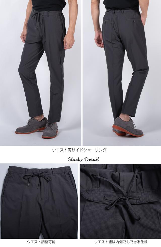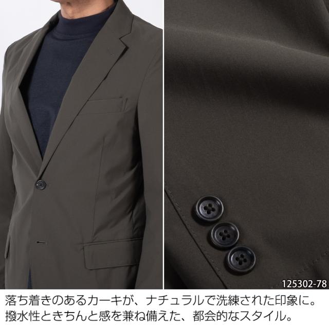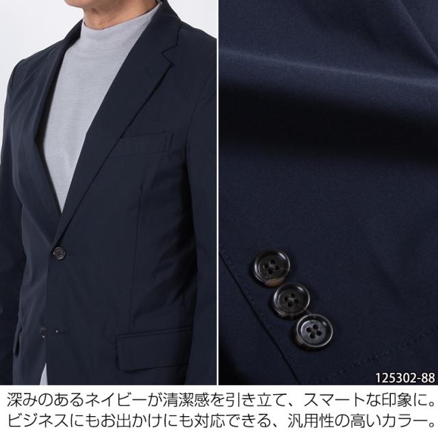 【仕様】背抜き仕様 センターベント 左右ポケット 袖口3つボタン 左胸内ポケット ノータック ウエストゴム 左右ポケット 後ろポケット ウエスト調整ヒモ