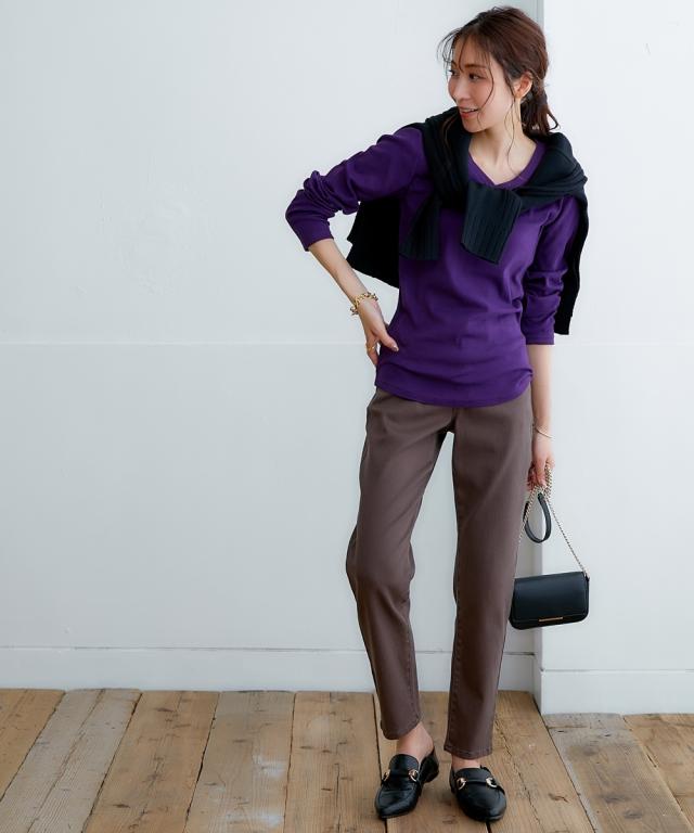 程よい肉厚の綿100%のやわらかTシャツ。絶妙な開きのVネックやウエストをほんのりシェイプしたシルエットでオンの着こなしにも投入できます。しゃがんでも背中が出にくい設計。洗濯しても毛羽立ちしにくい。UVカット機能付!