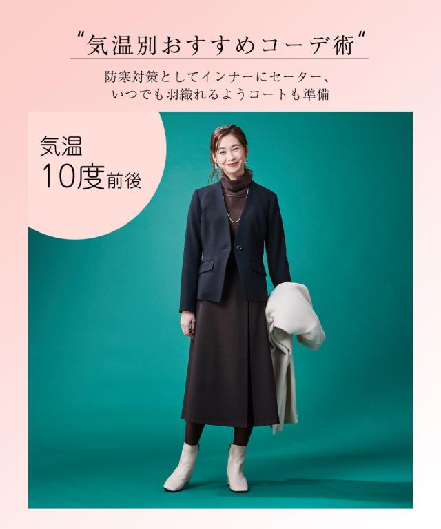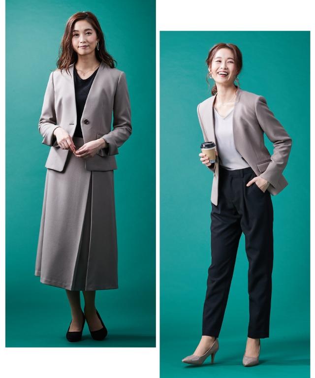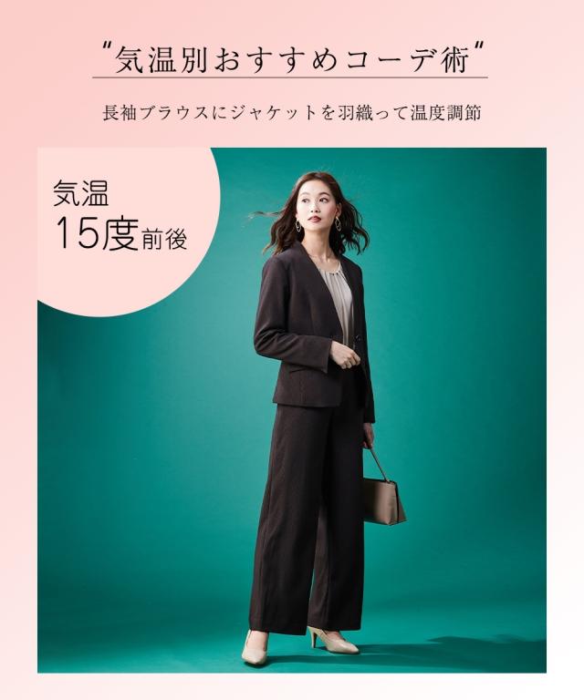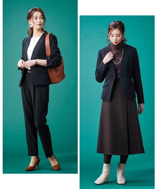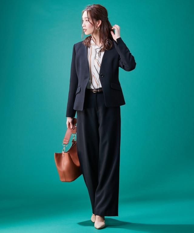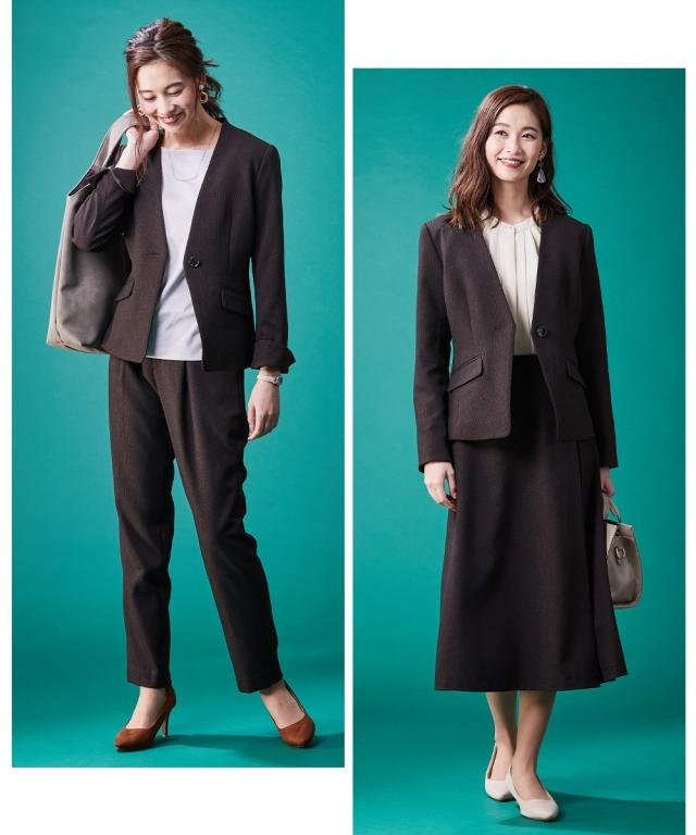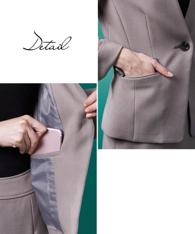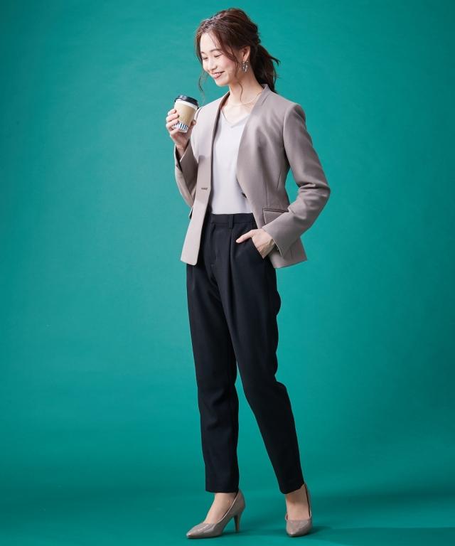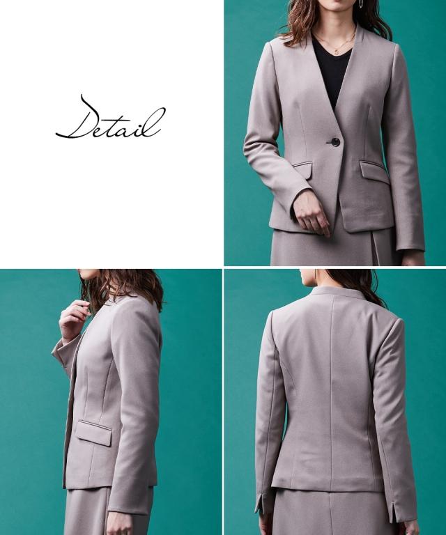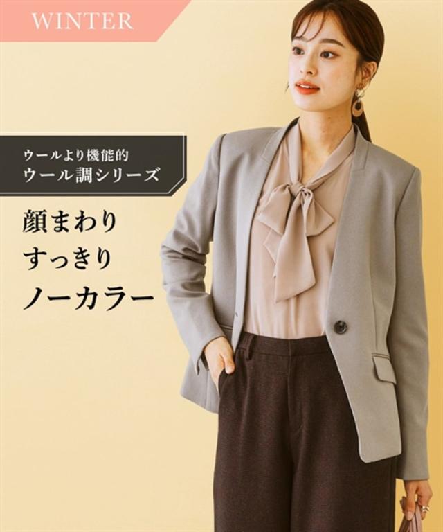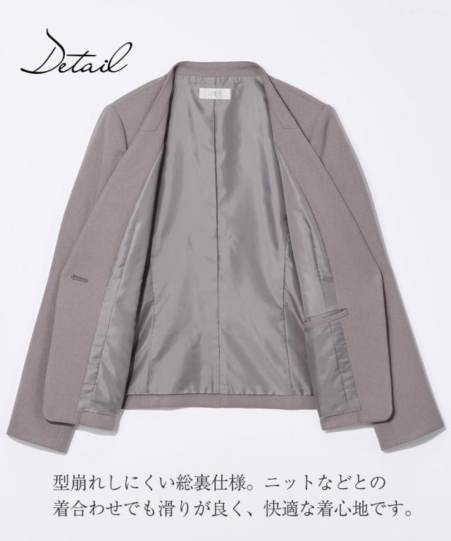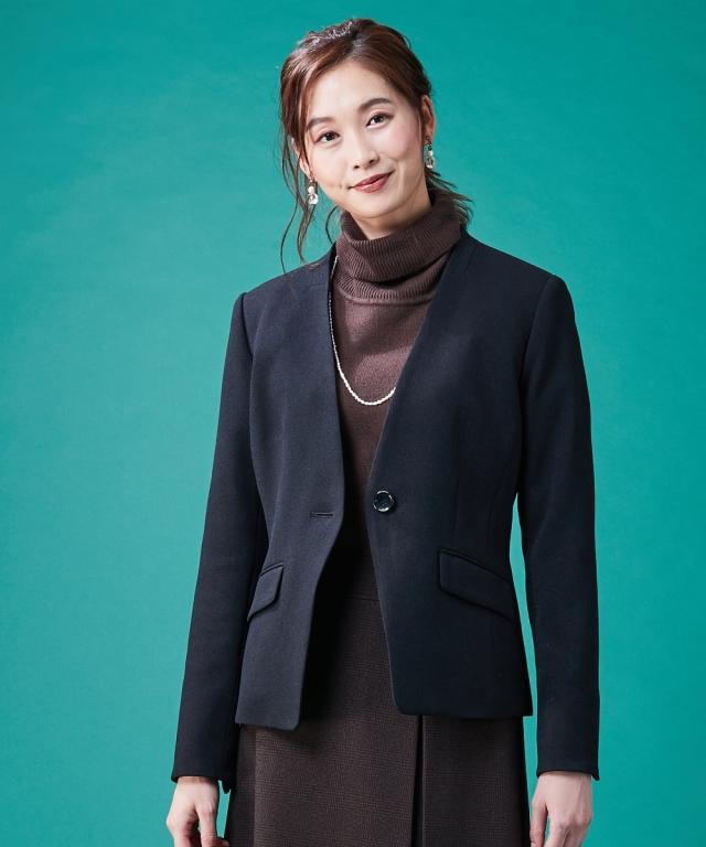 【レディーススーツ】セットアップ対応洗えるウール調ストレッチノーカラージャケット(上下別売)
