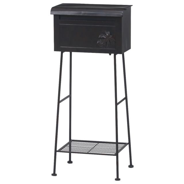ポスト モンステラ 横型 ( 郵便ポスト ガーデンポスト スタンドポスト 郵便受け 置き型 スタンド型 新聞受け メールボックス 一戸建て 屋外 玄関 自立式 アンティーク風 ラック 棚付き おしゃれ )