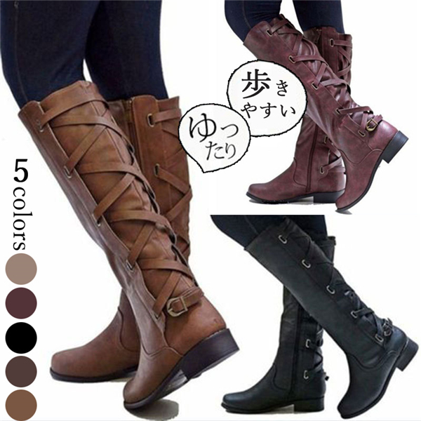 ロングブーツ レディース ブーツ ロング エンジニアブーツ エンジニア シンプル 疲れない チャンキーヒール 太ヒール ローヒール 大きいサイズ ロング ブーツ ヒール ゆったり 防寒 靴