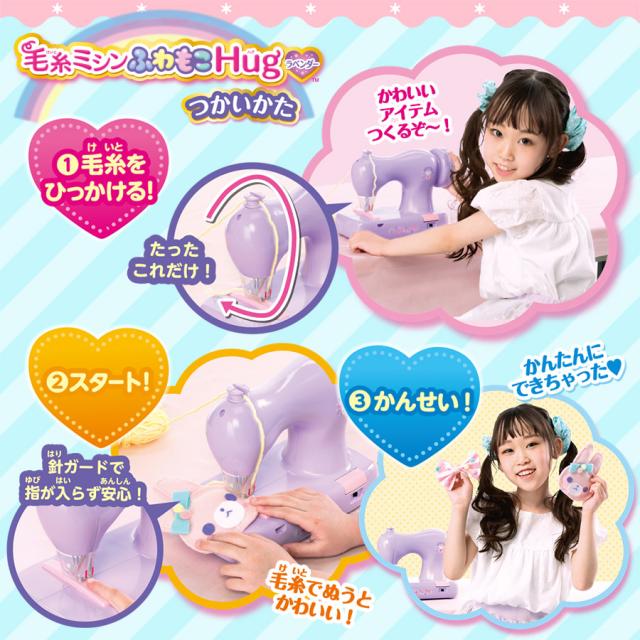 毛糸ミシン ふわもこHug ラベンダー KM-10ll アックスヤマザキ 子供用ミシン ミシン かんたん おもちゃ 玩具 毛糸 こども 子供 女の子 誕生日 プレゼント 初心者 こどもミシン