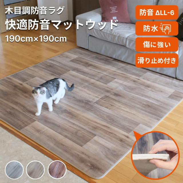 防音マット 防音カーペット ラグ 木目柄 床 防音 防振 水拭きOK ピアノ防音 騒音 快適防音マットウッド 190cm×190cm プレイマット ベビー 子供