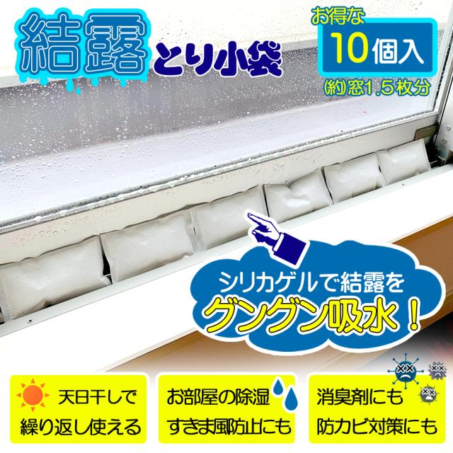結露とり小袋 10個入り 日本製 送料無料 結露対策 結露防止 結露除去 結露吸収 結露 けつろ 水滴 水分除去 窓の水滴 除去 窓濡れ 除湿 防カビ 天日干し 再利用可能 乾燥 シリカゲル 水分吸収 水滴対策 1000円ポッキリ