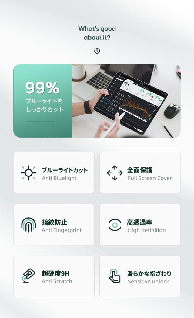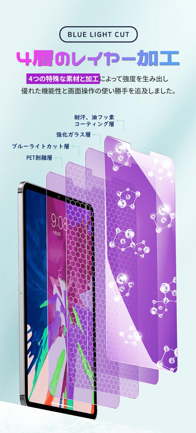 ブルーライトカット 強化ガラスフィルム 保護フィルム iPad 多機種対応