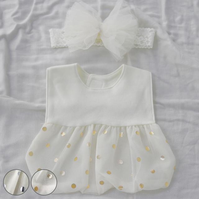 丸く膨らんだすそがかわいらしい、バルーンスカートのようなスタイと、チュールリボンヘアバンドのセットです。女の子に人気の2点をセットにしました。お誕生日などのイベントでも映えること間違いなしです。