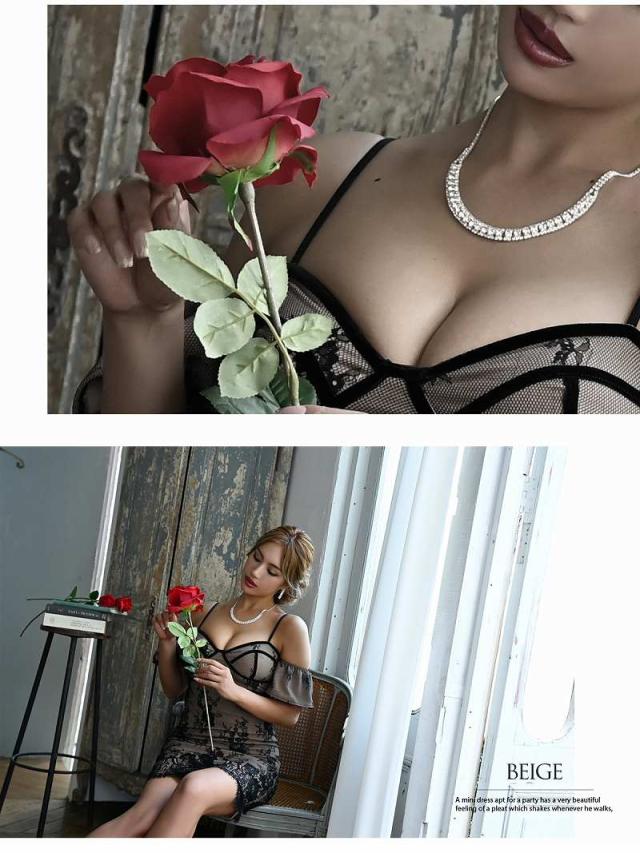 ☆落ち着きのあるカラーにsexyブラック総レースが大人の雰囲気を盛り上げてくれるタイトミニドレスです。