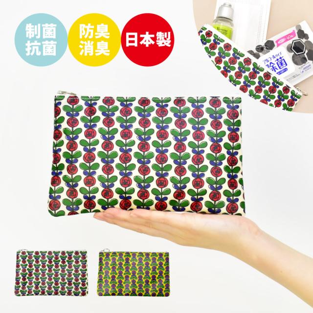 安心の日本製 抗菌防臭加工 小物入れ 化粧 メイクポーチ 旅行 平ポーチ コットン 大きい マチなし BIOLINER お花 バラ 母の日 プレゼント 誕生日 プチギフト お礼 お祝い ギフト