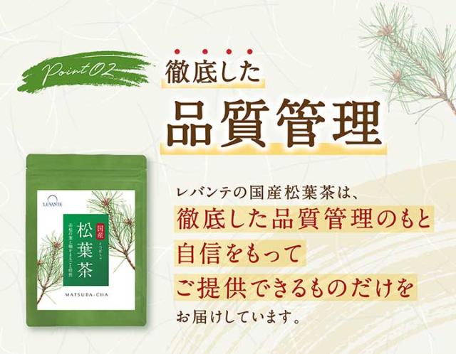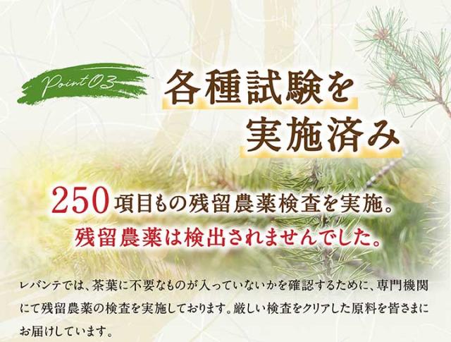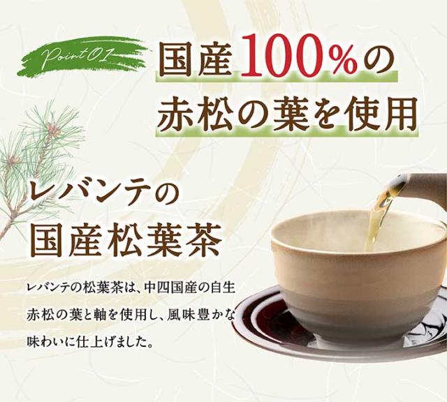 レバンテの松葉茶は、中四国産の自生赤松の葉と軸を使用し、