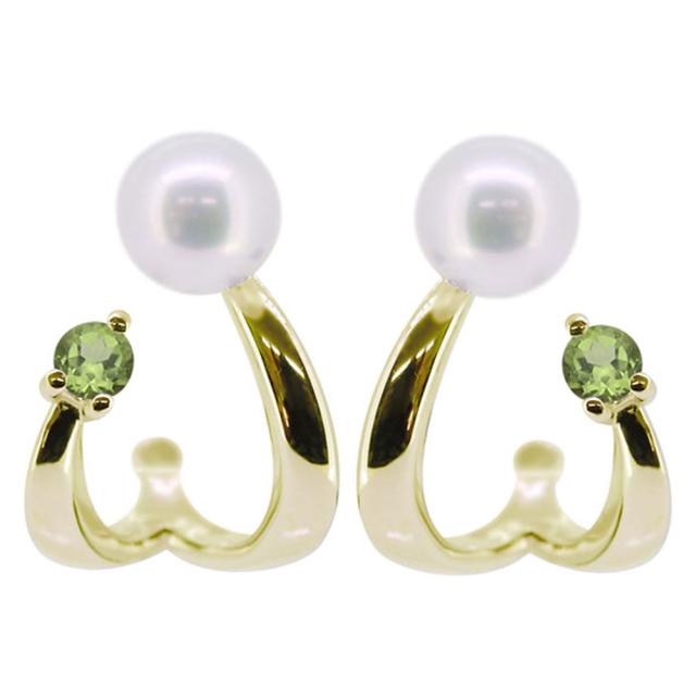 8月誕生石ペリドットを使用した18金製のパールイヤーカフピアスです。