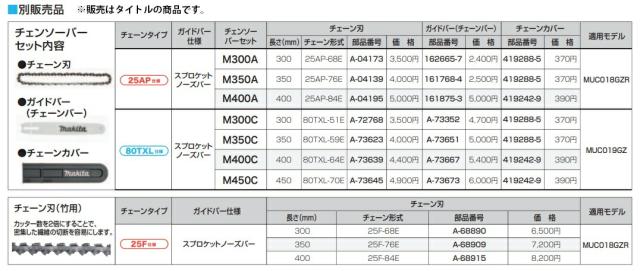 (マキタ) ガイドバー (チェーンバー) A-73352 ガイドバー長さ300mm スプロケットノーズバー 適用機種MUC009G makita