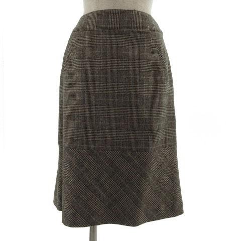 【中古】ニューヨーカー NEWYORKER スカート 台形 ひざ丈 グレンチェック ウール混 ブラウン 茶 9 レディース