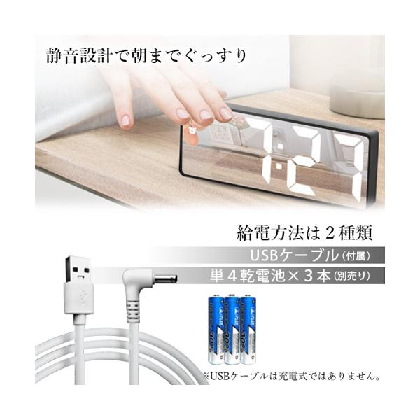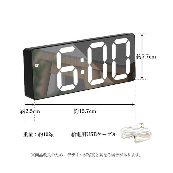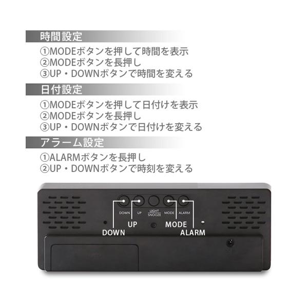 目覚まし時計 置き時計 デジタル LEDライト 静音設計 おしゃれ かわいい 子供 ブラック 長方形 (管理S) 送料無料