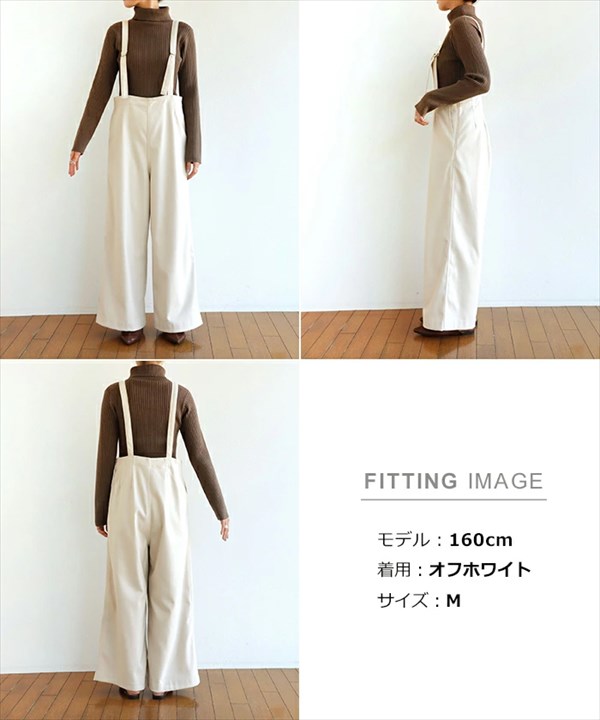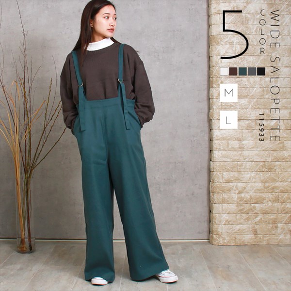 送料無料 サロペット パンツ 暖かい フェイクウール ウール調 オモテ起毛 ワイド レディース ストラップ サイドポケット サスペンダー風 暖か M/Lサイズ 体型カバー カジュアル おしゃれ おすすめ かわいい 可愛い オフィスカジュアル 楽ちん ゆったり Ladies bottoms pants ブラック 黒 ホワイト グレー ブラウン グリーン