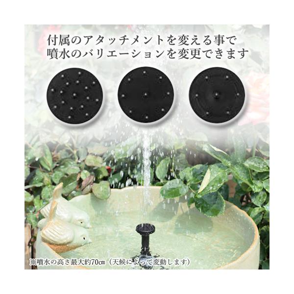 アタッチメントが付属しており、変更する事で噴水のバリエーションを変更できます。