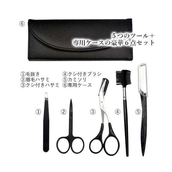 眉毛セット 眉毛ハサミ くし付き 毛抜き カミソリ 眉毛カット メンズ レディース まゆげ エチケット ケア 眉そり 6点 (管理S) 送料無料