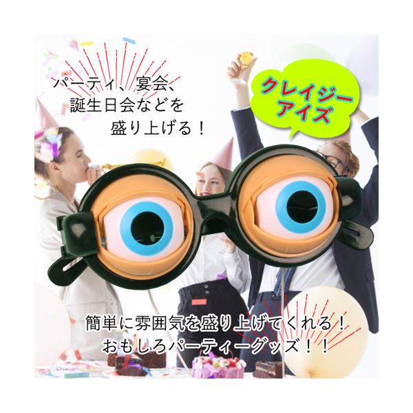 メガネから目が飛び出たデザインで掛けるだけで強烈なインパクト。