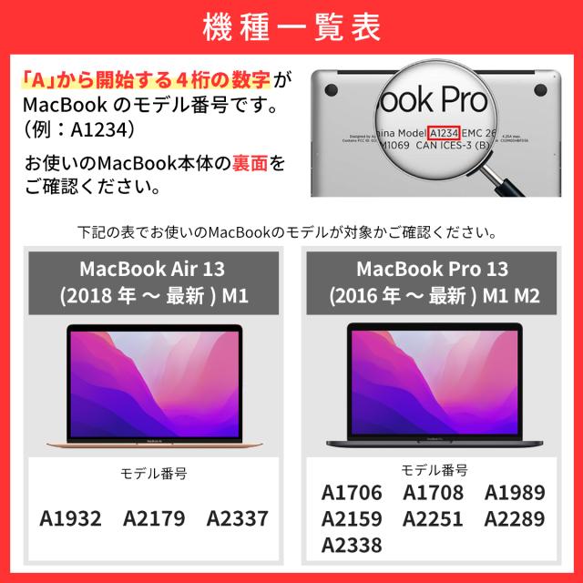 ( MacBook Air/Pro フィルム サイズ一覧表 )