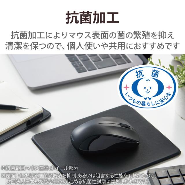 ■抗菌加工によってマウス表面の菌の繁殖を抑え、清潔に保てるため、個人使いはもちろん共用にもおすすめです。(抗菌範囲:マウス筐体、ホイール部分)※2