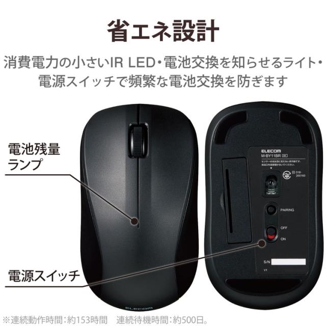 ワイヤレスマウス Bluetooth 3ボタン 抗菌 軽量 IR LED Mサイズ ブラック M-BY11BRKBK エレコム(代引不可)【送料無料】
