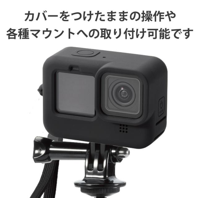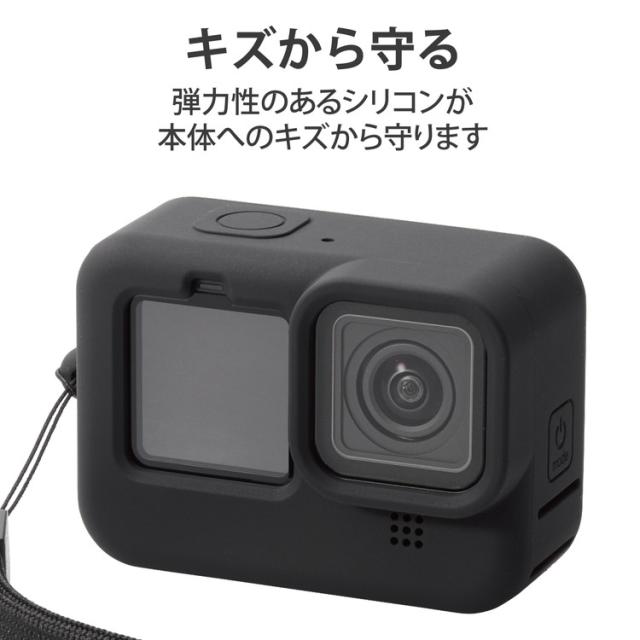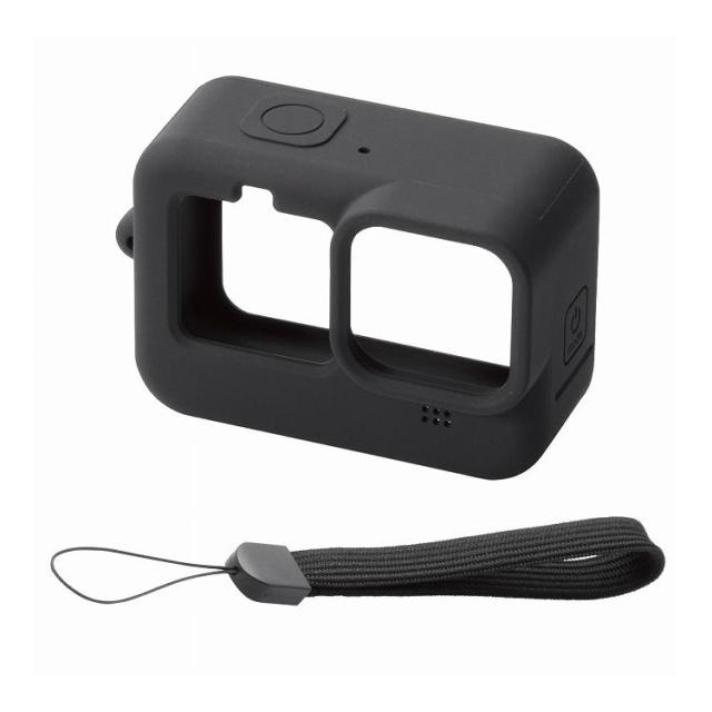 GoPro HERO9 Black用 シリコンケース ハンドストラップ付き アクションカメラ ゴープロ9 ブラック AC-GP9BSSCBK エレコム(代引不可)