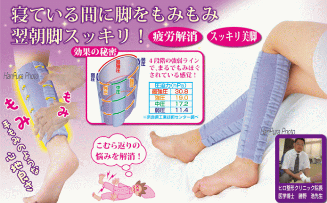 ![]() ![]() ![]() ![]() ![]() ![]() 着けて寝るだけで翌朝足スッキリ! ☆足のむくみ・疲労の解消、血行促進 ☆毎朝足がだるくて重い人に ☆一晩で足スッキリ! ☆立ち仕事、旅行、ウォーキングに ■お医者さん考案、ゴム糸を一切使わない特殊なベアー編みで作られたふくらはぎ用着圧サポーター。 ■3本の中弱圧ラインとその間にある強圧ラインとが組み合わさった4段階の強弱マッサージライン。 ■血行を刺激して血流の流れをスムーズにしてだるさ・疲労・むくみの解消でスッキリ美脚に。 ■弱編みと強編みの組み合わせが手もみマッサージをされている様なほどよい着圧効果を足に与えます。 ■幅広弱圧ラインがふくらはぎを重点的にマッサージ、こむら返り、足のつりを予防します。 ■着けて寝るだけで一晩中足をマッサージ!疲れが取れて一日を気持ちよくスタートさせられます。 ■血行の促進を促すことで冷え性の対策にも。 |