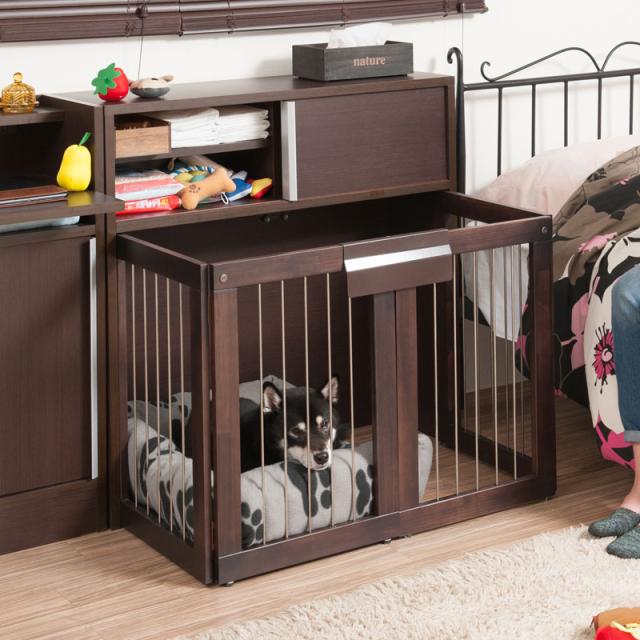 \ポイント消化!/ 【JUCEE】シリーズ 省スペース収納付き折りたたみ型ケージ幅90 ダークブラウン