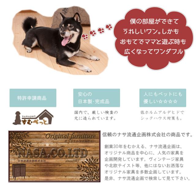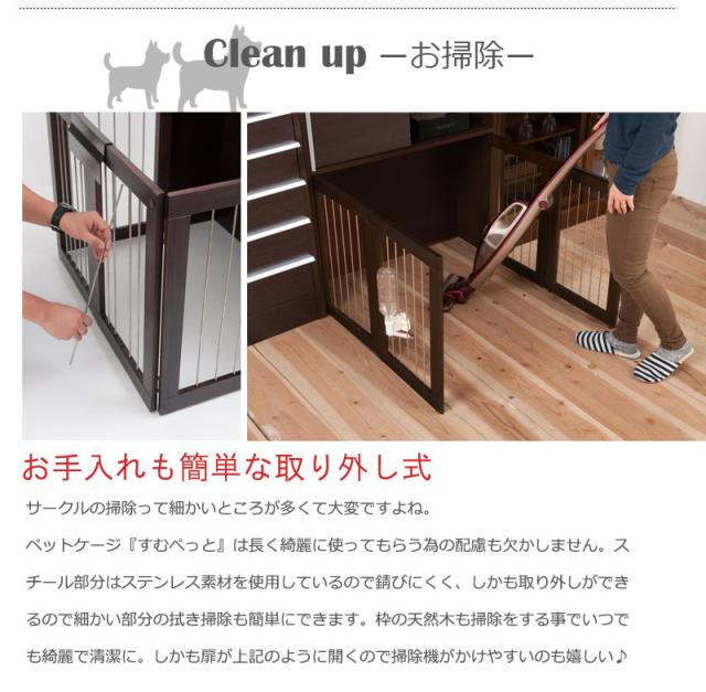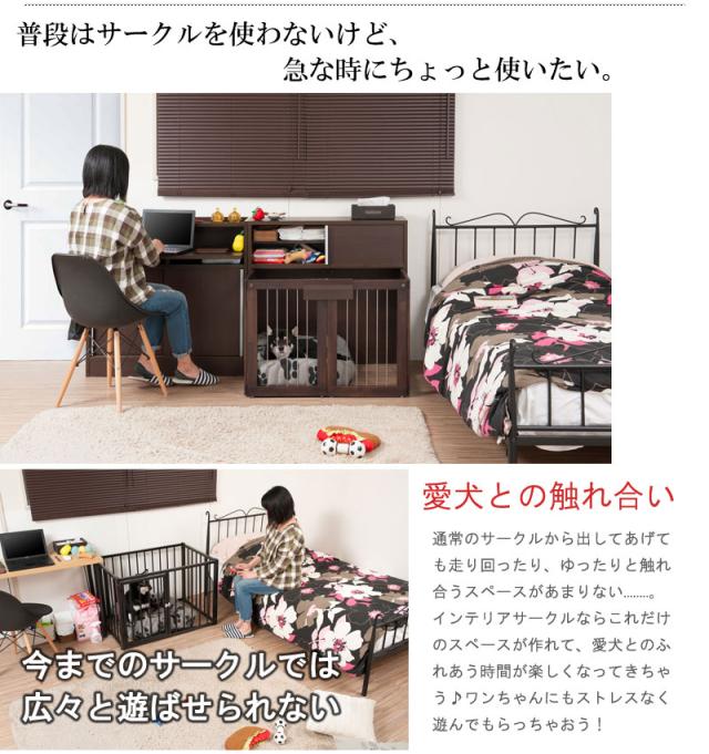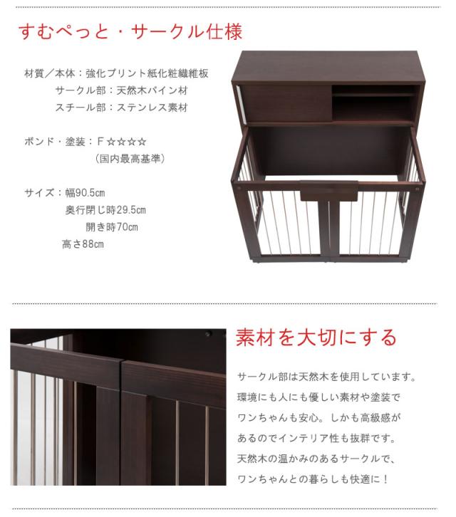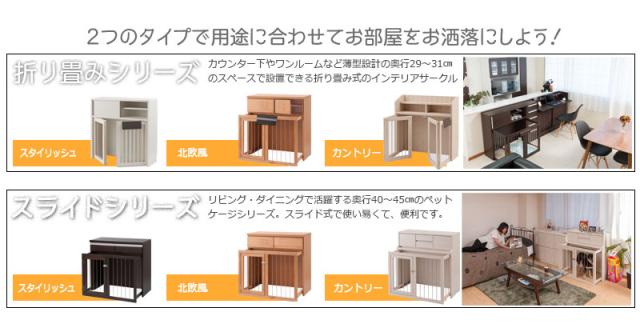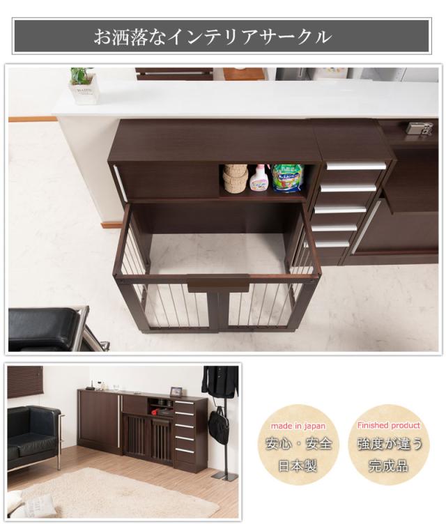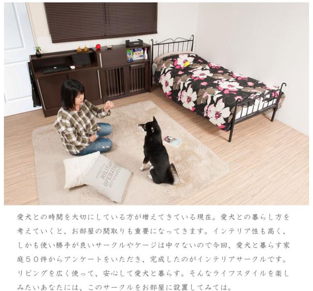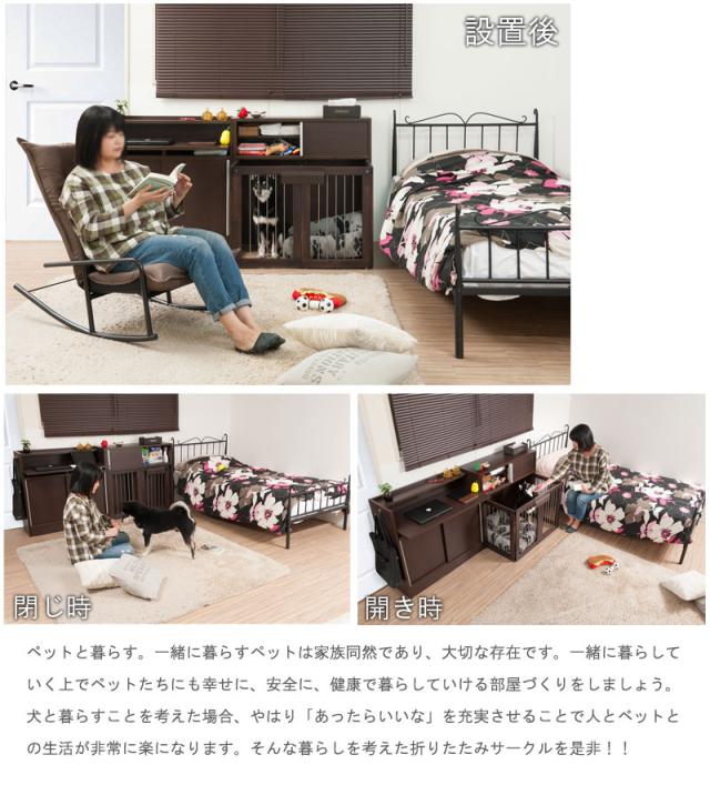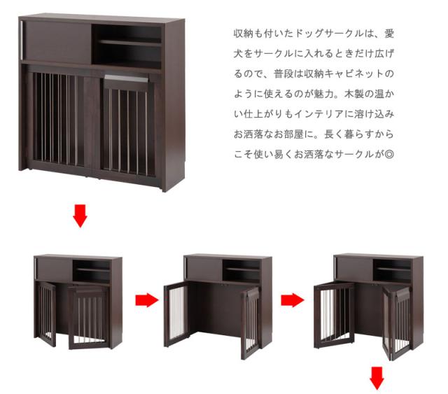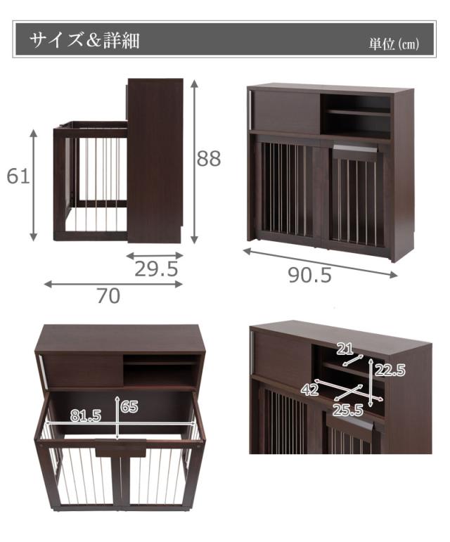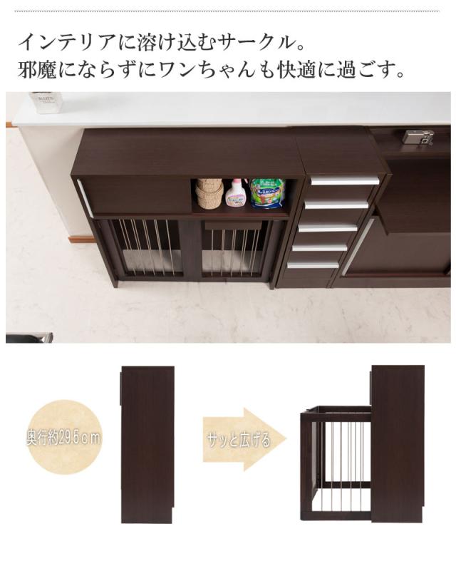 ■商品について/シンプルに仕上げたスタイリッシュシリーズ。木製ワンタッチでたたんでしまえる収納型ケージ。収納も付いたドッグサークルは、愛犬をサークルに入れるときだけ広げるので、収納キャビネットのように使えるのが魅力。本体の奥行は約29.5でカウンター下や窓下に置いても邪魔にならないサイズ感。