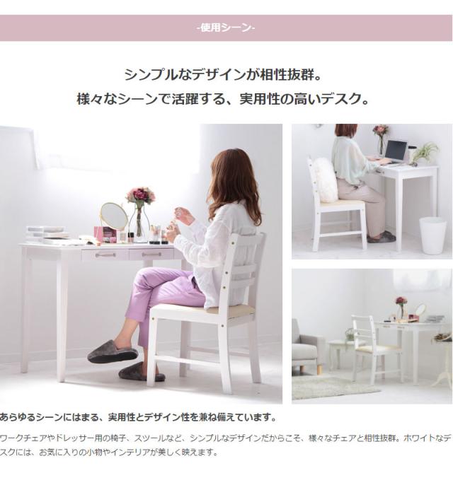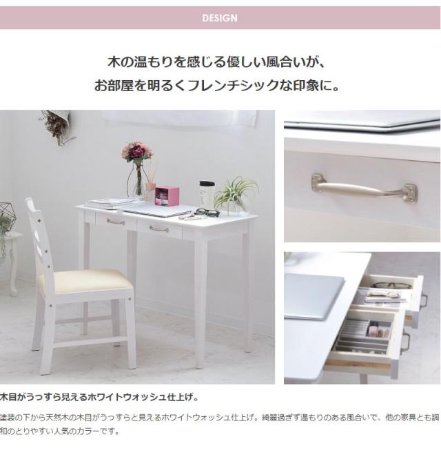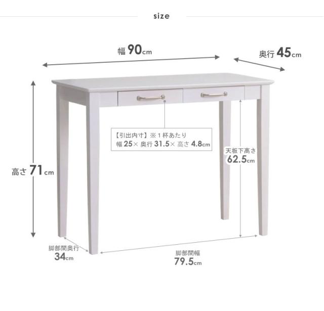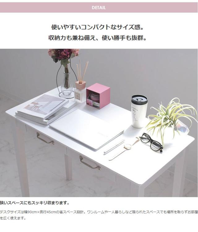 デスク おしゃれ 北欧 木製 パソコンデスク 90cm幅 白 省スペース アンティーク 引き出し 奥行45cm ドレッサー テーブル ホワイト 可愛い(代引不可)【送料無料】