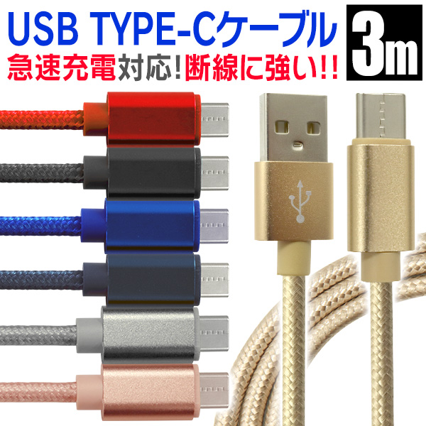 USB Type-C ケーブル Type-C 3m USB 充電ケーブル タイプC C端子ケーブル 耐久 高速充電 データ転送ケーブル Android Galaxy Xperia AQUOS HUAWEI ケーブル ゆうパケット 送料無料