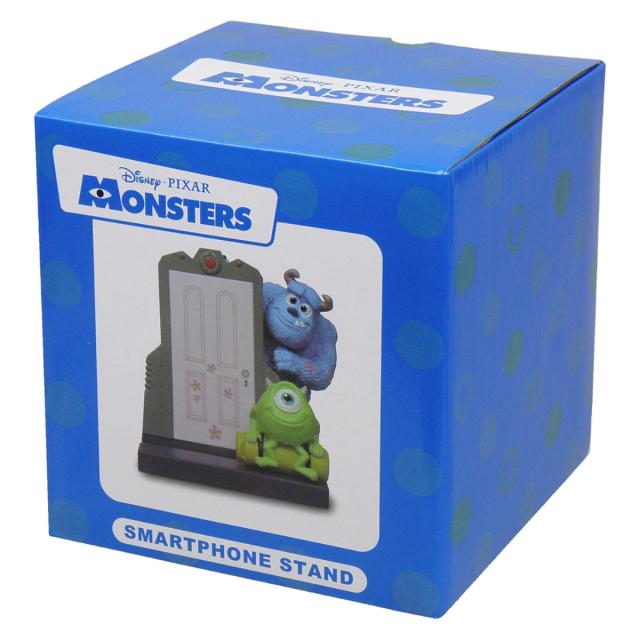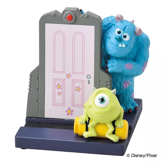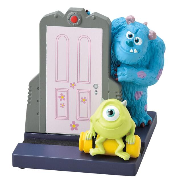 「モンスターズインク」のサリーとマイクの仕草が微笑ましいスマートフォンスタンドです。モンスターの世界へ入り込んでしまった女の子「ブー」の部屋をドア越しに覗いているサリーと、エネルギータンクに腰かけたマイクがスマートフォンを支えてくれます。
