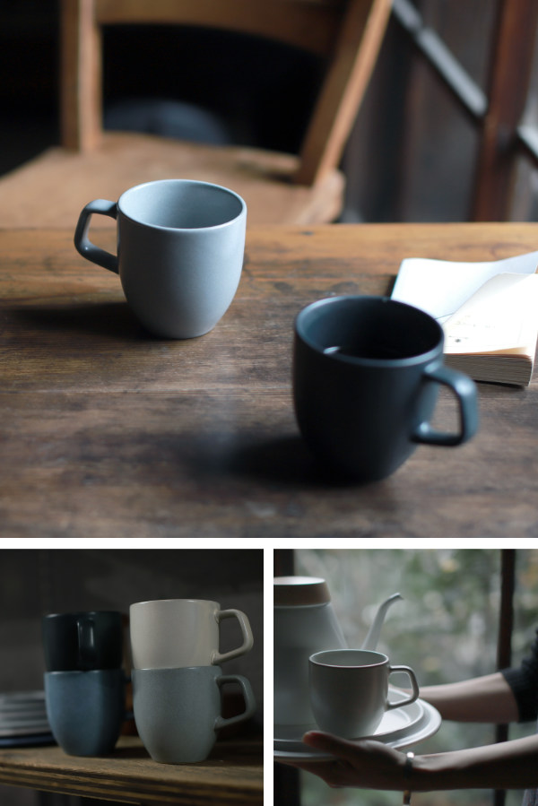美濃焼の産地、多治見地方で作られたマグです。シンプルで柔らかなフォルムとあたたかみを感じる釉薬のムラ感が魅力的です。使っていく内に愛着がわきそうです。