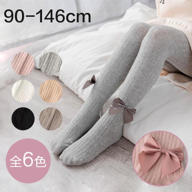 大きめリボンがかわいさ満点 キッズ用タイツ 女の子タイツ キッズインナー ピンク ブラウン ベージュ ブラック 黒 ホワイト 白 グレー 秋冬 秋 冬 90 110 120 140 150