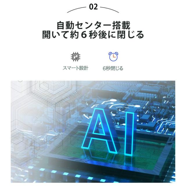 【一押しで長時間開け】長時間使いたい時、「OPEN」ボタンを押し、約420秒間開きます。その後、「CLOSE」のボタンを押せば、すぐに閉めます。