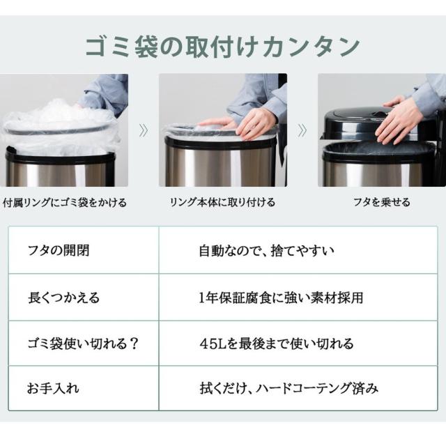 自動センサーゴミ箱 センサーゴミ箱 全自動開閉式ゴミ箱 自動開閉 ふた付き 大容量45L ステンレス キッチン ダストボックス スリム ごみ箱