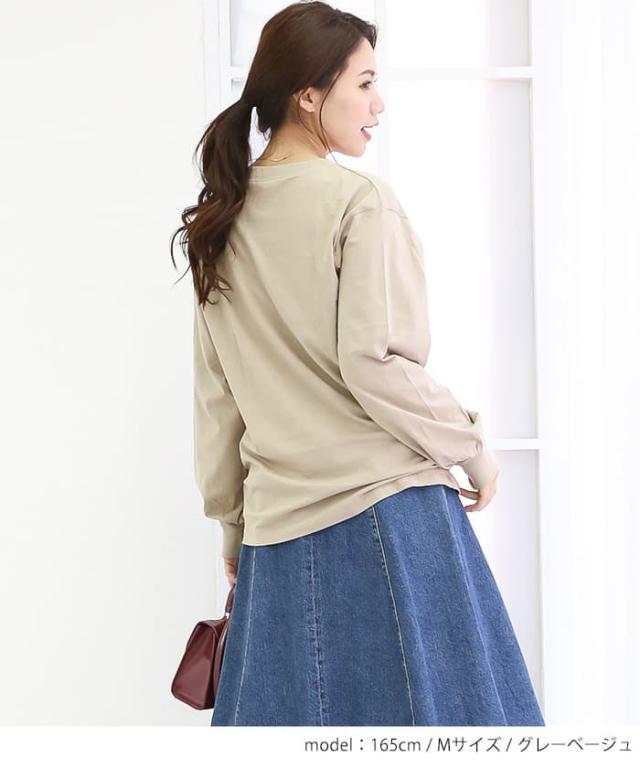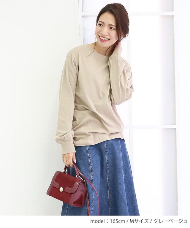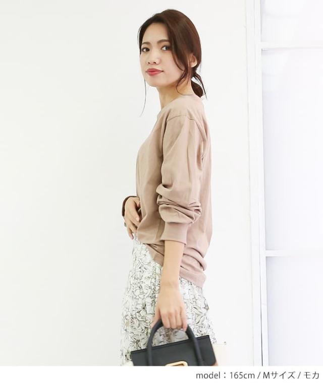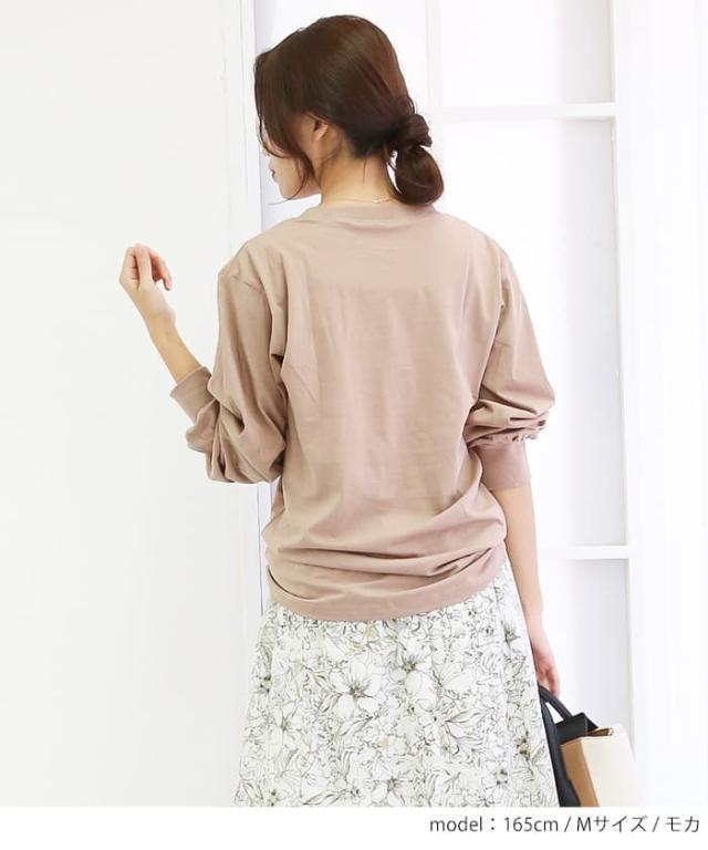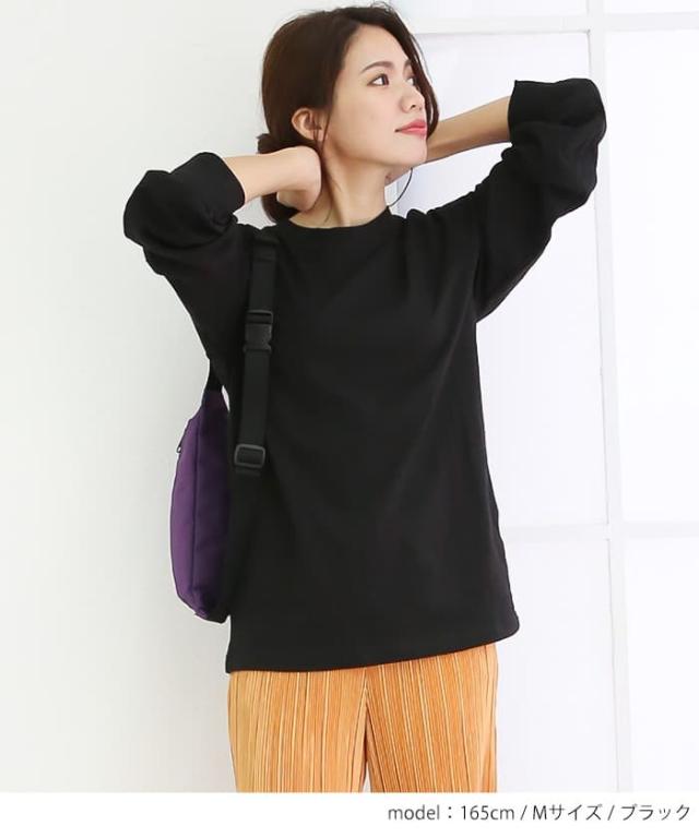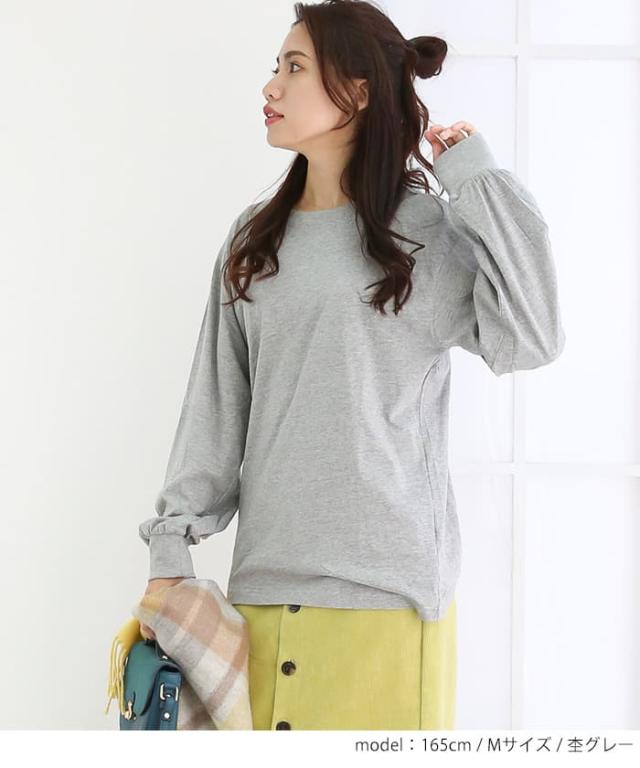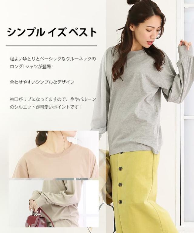 | シンプルイズベスト。程よいゆとりとベーシックなクルーネックのロングTシャツが登場。合わせやすいシンプルなデザイン。袖口がリブになってますので、ややバルーンのシルエットが可愛いポイント |